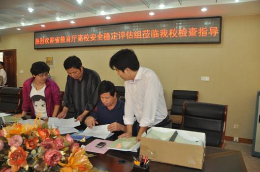听完汇报后,评估组专家根据《2012年江西省高校安全稳定工作评估细则》考评指标逐项查阅了我校安全稳定工作的相关文件和材料,查看了我校监控中心设备运行情况,并对学生公寓以及食堂等重点场所的消防设施情况进行了实地查看。