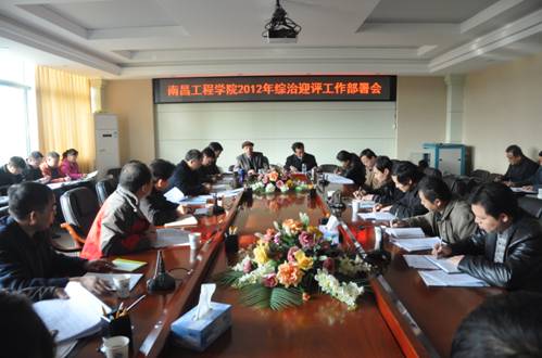 为迎接省综治考评,12月3日下午,我校在行政楼300会议室召开2012年综治迎评工作部署会,校党委书记、校综治领导小组组长李水弟,校领导、校综治领导小组副组长张立青、梁钢、张晨曙、吴泽俊、李明、樊后保、汪荣有及全体社会管理综治领导小组成员共四十九人出席会议,会议由校长扶名福主持。
