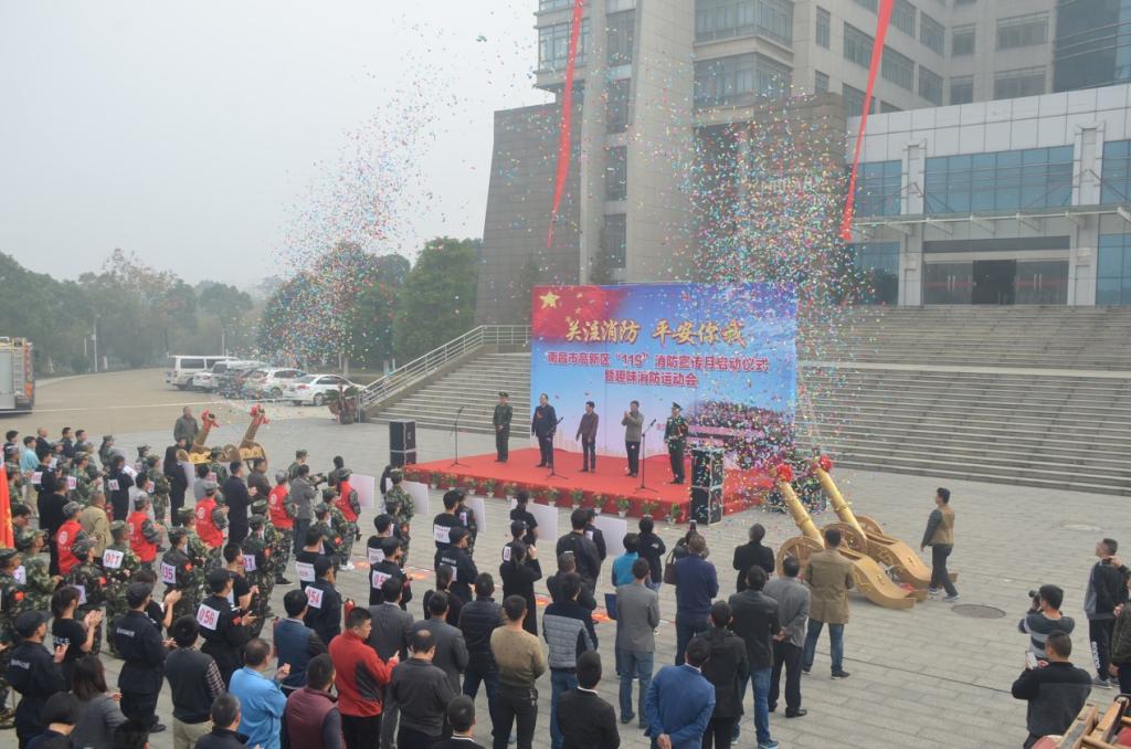 11月8日上午,由南昌市高新区消防安全委员会和我校主办的“119”消防宣传月启动仪式暨趣味消防运动会活动在校图书馆前隆重举行。活动旨在普及消防安全知识,提高全民消防安全意识,打牢消防安全基础,强化消防安全理念,推动消防知识入脑入心。