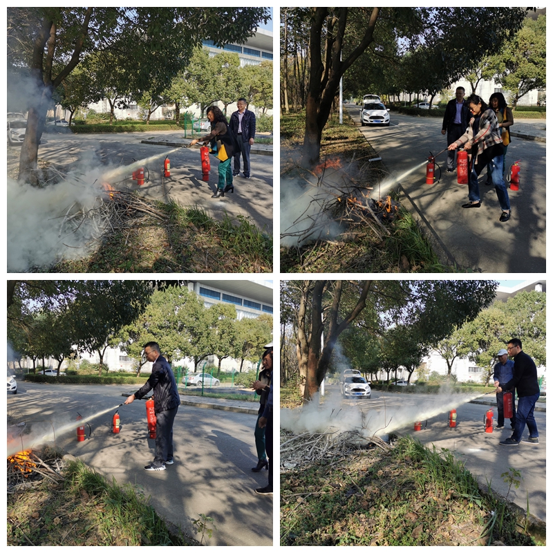 教职员工亲自操作消防器材扑灭模拟火灾危险源