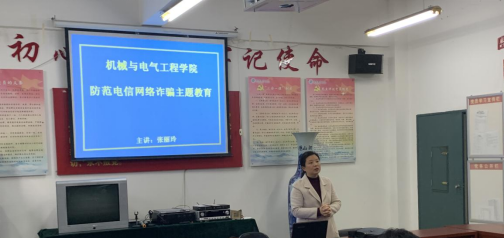 为了增强我院大学生的安全防范意识,促进学院的平安建设工作,2021年3月18日上午,机械与电气工程学院在机电楼A406召开防范电信网络诈骗主题教育。活动由学院综治联络员张丽玲老师主讲,学院学生干部参加本次活动。