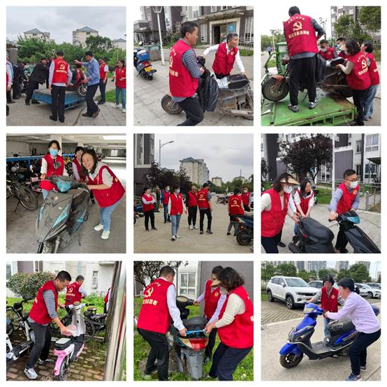 5月23日下午,机关党委结合“我为群众办实事”实践活动,联合保卫部(处)在教师公寓区域开展“僵尸电动车”集中清理整治行动,20多名党员参加了此次志愿服务。