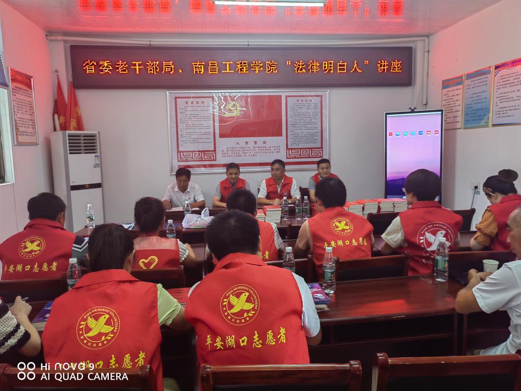 帮扶工作组深入湖口县双钟镇莲湾社区为志愿者及居民开展了“法律明白人”、防溺水、防电信网络诈骗等方面的专题讲座及培训,现场发放防溺水等宣传资料500余份;捐赠《中华人民共和国民法典》《中华人民共和国宪法》《中华人民共和国刑法》等法律读本150余册,提升了社区群众法律意识和安全防范水平,助推湖口县平安建设工作深入开展。此外,工作组与湖口县政法委及村社区干部就基层网格化管理进行交流。(文/图 刘兵)
