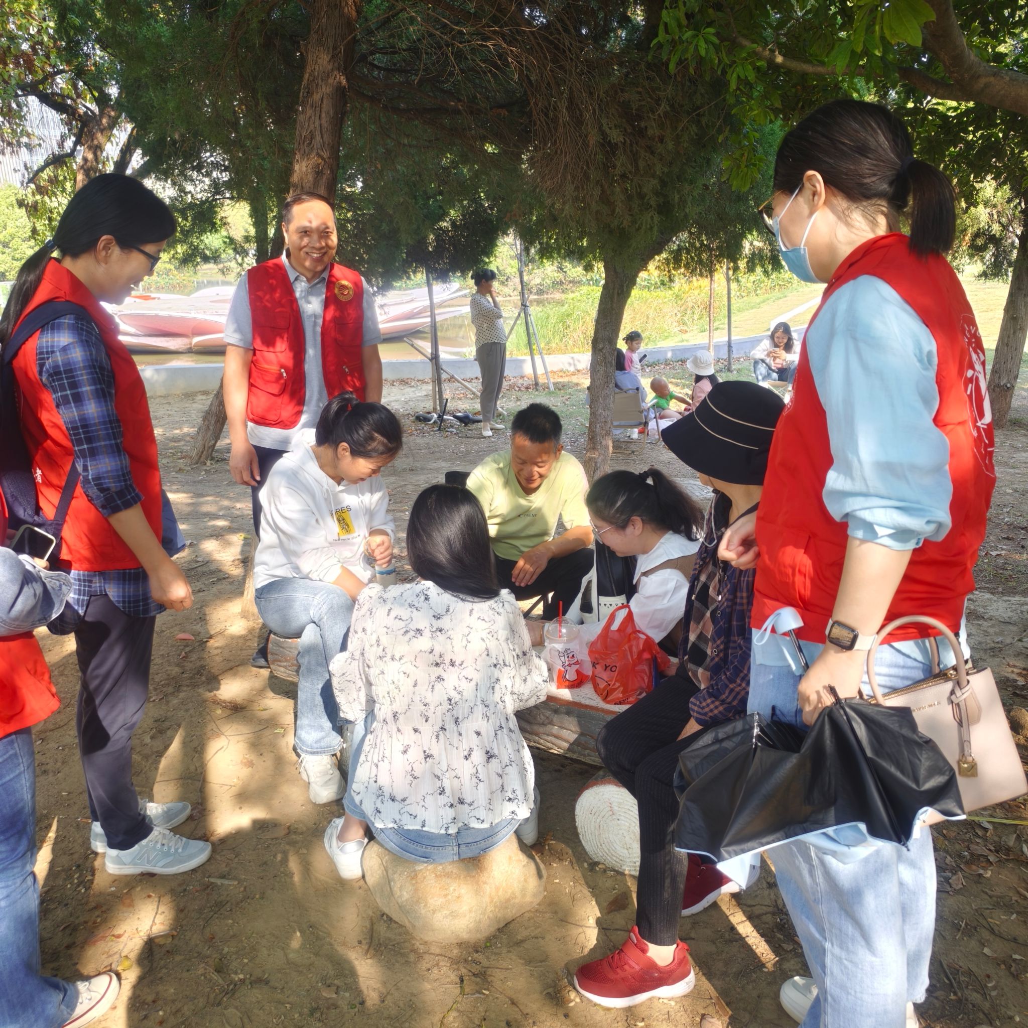 志愿者们来到艾溪湖湿地公园向过往群众及周边小区居民发放防溺水宣传单,给家长们详细讲解防溺水相关知识,并演示了溺水急救的步骤和措施,叮嘱家长们务必增强安全意识,加强对孩子结伴出游的教育和监管,严防溺水事故的发生。