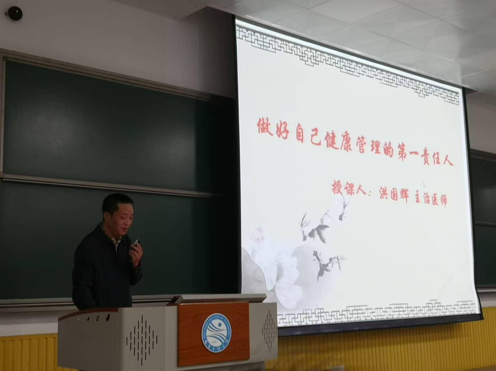 活动中,校医院洪国辉、付艺璇二名医务人员分别为学生作了题为《做好自己健康管理的第一责任人》《南昌市大学生医保常见问题解答》专题讲座,对校医院就诊流程、常见病及传染病防治、应急救护、培养健康生活方式、大学生医保简介待遇、异地就医、学平险问题等方面进行了详细阐述,并针对同学们的提问进行了现场解答。(文/洪国辉 图/祝小华)